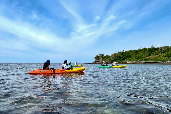 半日単位のカヤック&海遊び体験コースでは、2人乗りシットオン・カヤック使用。安定感があり転覆の心配がないので、初心者の方や親子での体験にもおすすめです。