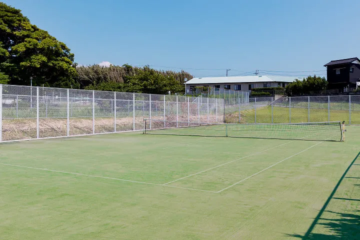本格的なプレーが楽しめるテニス専用の人工芝コート。館山の過ごしやすい気候の中で、日常のリフレッシュを。