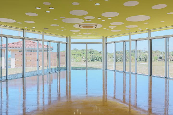 館山の海が一望できる開放的なスタジオでは、ヨガ・ダンスなどスポーツ利用のほか、研修・会議などでもご利用いただけます。
